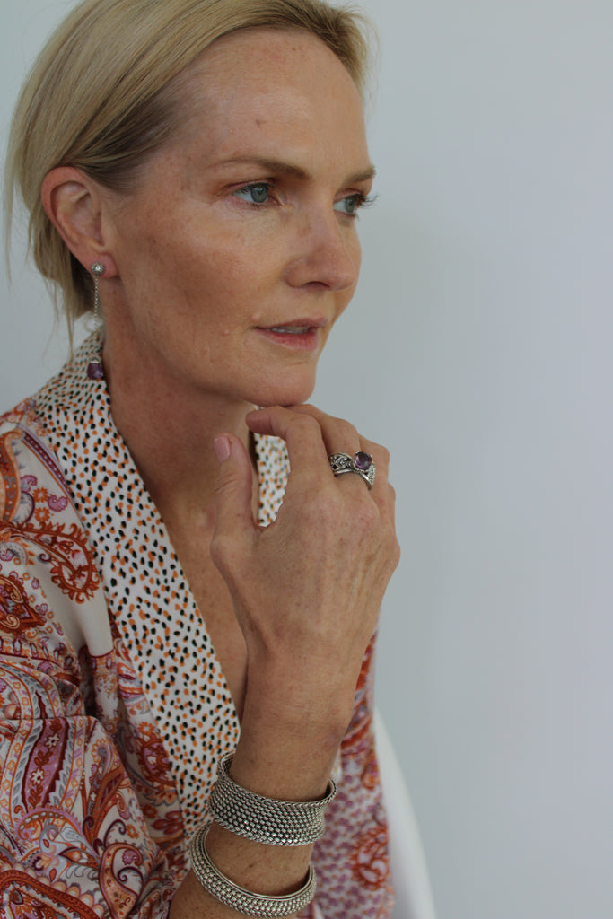 Adorned by magnificent faceted cut light purple gemstone - Amethyst; this beautiful ring is set in 925 silver, with a beautiful faceted gem 8mm x 8mm.
