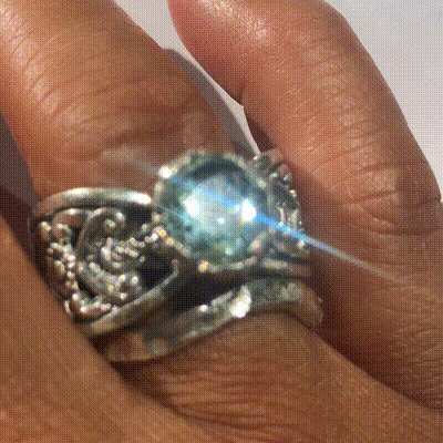 Adorned by magnificent faceted cut light blue gemstone - Blue Topaz; this beautiful ring is set in 925 silver, with a beautiful faceted gem 8mm x 8mm.