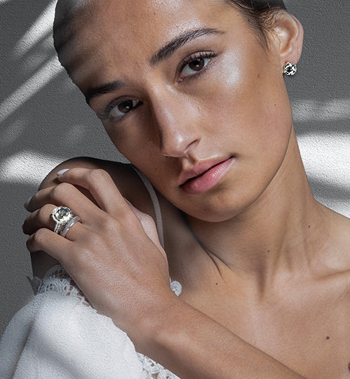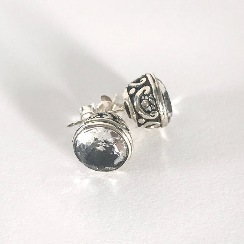 Crafted from Sterling Silver, these stud earrings boast a meticulously detailed band that reflects Aphrodite's graceful charm. The stone diameter is 1 cm.